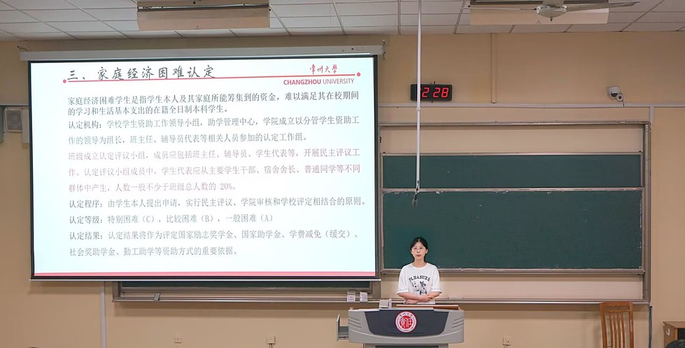 會(huì)議第二項(xiàng)議程,由輔導(dǎo)員何瑞玉為同學(xué)們進(jìn)行資助政策解讀。何老師圍繞學(xué)生資助體系,詳細(xì)介紹了國家助學(xué)貸款、國家助學(xué)金、國家勵(lì)志獎(jiǎng)學(xué)金、社會(huì)助學(xué)金以及學(xué)校各類專項(xiàng)資助項(xiàng)目的申請(qǐng)條件、流程和注意事項(xiàng)。她的講解細(xì)致全面,旨在幫助同學(xué)們清晰了解政策,徹底解除后顧之憂,決不讓經(jīng)濟(jì)問題成為求學(xué)路上的絆腳石,鼓勵(lì)大家放下包袱,專心學(xué)業(yè)。