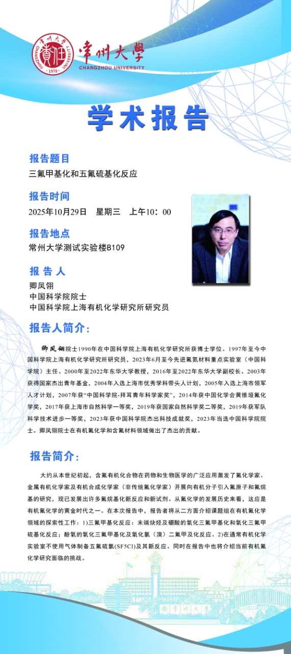 【學(xué)術(shù)報(bào)告】10月29日自然與合成有機(jī)化學(xué)研究院學(xué)術(shù)報(bào)告——卿鳳翎院士 中國(guó)科學(xué)院