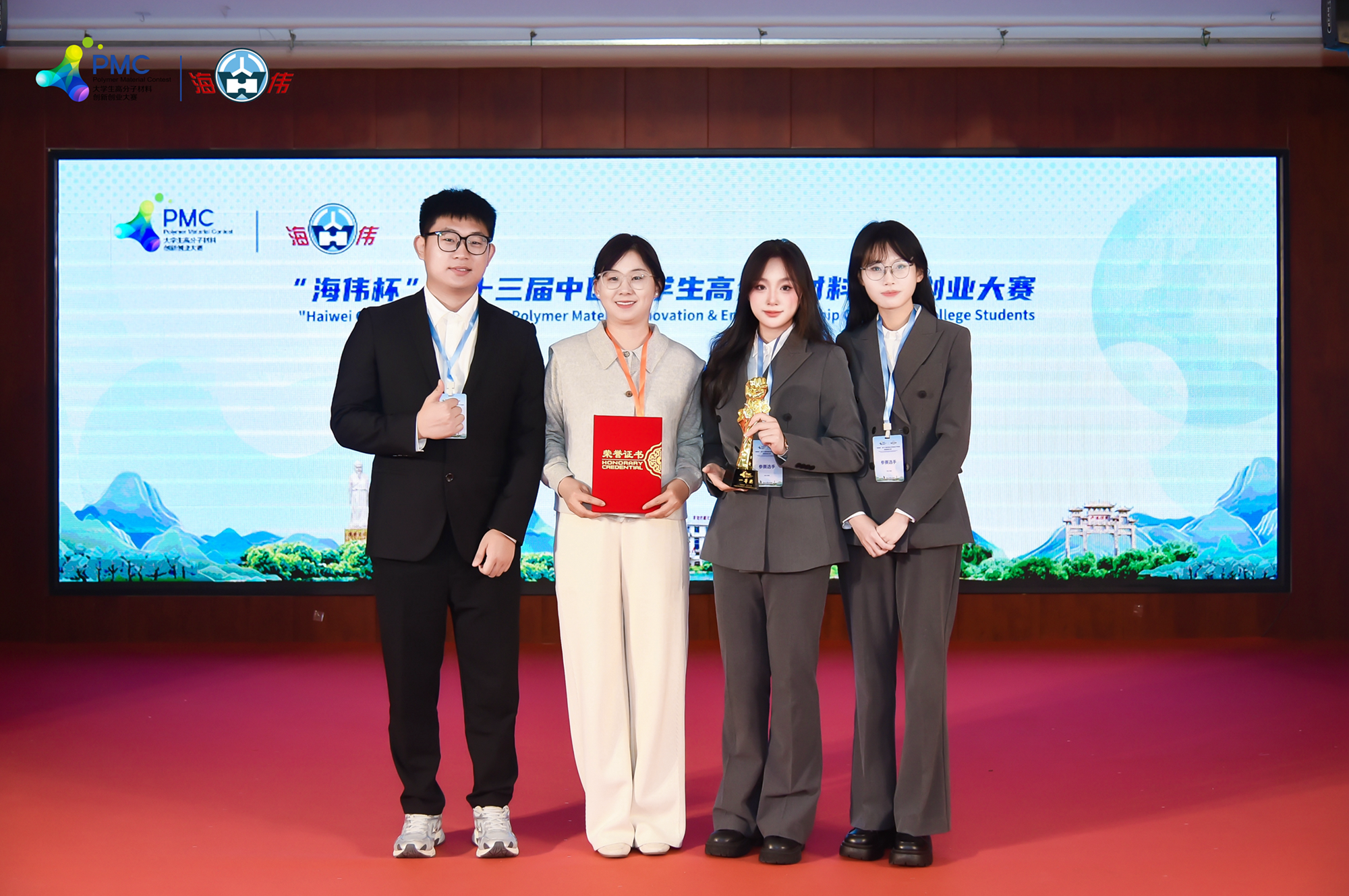 自“海偉杯”大賽啟動(dòng)以來,我校石油化工學(xué)院高度重視參賽組織,充分發(fā)揮跨學(xué)科協(xié)同優(yōu)勢(shì)——依托本院技術(shù)指導(dǎo)能力與環(huán)境科學(xué)與工程學(xué)院應(yīng)用研究基礎(chǔ),深度挖掘項(xiàng)目潛力,以 “有組織謀劃、系統(tǒng)性培育” 推動(dòng)師生組隊(duì)參賽。為提升競(jìng)爭(zhēng)力,學(xué)院開展項(xiàng)目培育、備賽集訓(xùn)與多輪模擬答辯;參賽團(tuán)隊(duì)全力投入,既深入調(diào)研挖掘參賽項(xiàng)目技術(shù)亮點(diǎn)與醫(yī)療場(chǎng)景,又對(duì)接機(jī)構(gòu)與企業(yè)需求,反復(fù)優(yōu)化打磨參賽作品。團(tuán)隊(duì)代表唐晨曦賽后說到:此次“海偉杯”之旅,于我們而言最珍貴的便是專業(yè)能力與團(tuán)隊(duì)協(xié)作力的雙向蛻變,我們?cè)谝淮未卧囧e(cuò)與精進(jìn)中,真正讀懂了科研的嚴(yán)謹(jǐn)與溫度。特別感恩林理偉、徐松兩位老師的傾囊相授,他們的指導(dǎo)讓我們的技術(shù)與能力得到了質(zhì)的飛躍與提升;也由衷感謝學(xué)校搭建的平臺(tái),讓我們有機(jī)會(huì)帶著研究成果站上全國(guó)賽場(chǎng)。這份沉甸甸的榮譽(yù),不是終點(diǎn)而是新起點(diǎn)。未來我們會(huì)帶著這份成長(zhǎng)與底氣,在高分子材料科研路上繼續(xù)深耕,用扎實(shí)的實(shí)踐與創(chuàng)新,不負(fù)師長(zhǎng)的信任,不負(fù)這份沉甸甸的認(rèn)可!