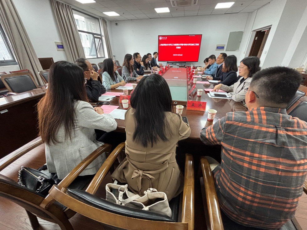 10月26日下午,上海應(yīng)用技術(shù)大學(xué)化工與能源技術(shù)學(xué)部主任韓生、黨委書記陳靜一行來(lái)我院交流,黨委書記業(yè)緒華、院長(zhǎng)劉平、黨委副書記劉國(guó)仕、副院長(zhǎng)黃薇等參加交流,會(huì)議由劉平主持。